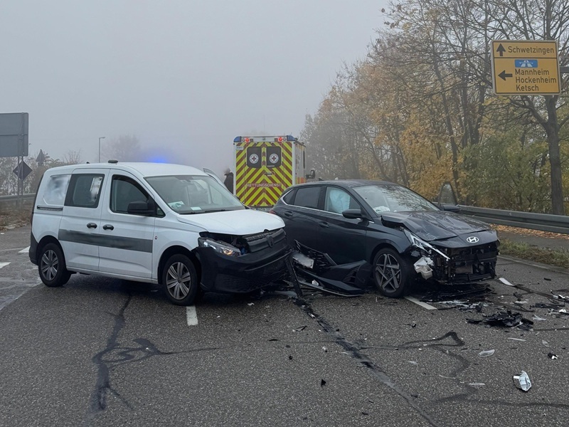 Um 7:51 Uhr wurden wir in die Schwetzinger Straße alarmiert. Dort wurde ein Verkehrsunfall gemeldet. Vor Ort war keine Person im Fahrzeug eingeschlossen. Wir sicherten die Unfallstelle, klemmten die Fahrzeugbatterien ab und nahmen auslaufende Betriebsstoffe auf. Im Einsatz waren wir mit zwei Fahrzeugen, Rettungsdienst und Polizei. -cb-