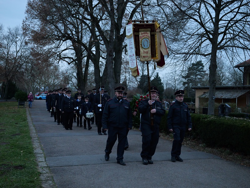 Mit einer würdevollen Zeremonie hat unsere Feuerwehr am Totensonntag zu ihrem Doppeljubiläum der verstorbenen Kameradinnen und Kameraden gedacht. Mitglieder aller Abteilungen versammelten sich dazu am Nachmittag auf dem Friedhof, um gemeinsam innezuhalten und die Erinnerung an jene zu ehren, die über viele Jahre ihren Dienst für unsere Gemeinschaft geleistet hatten.